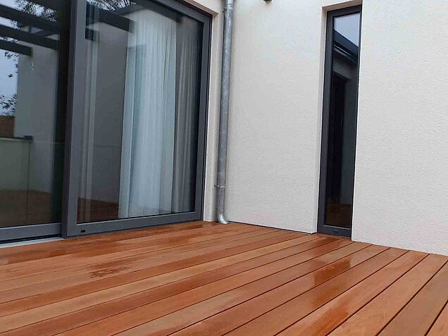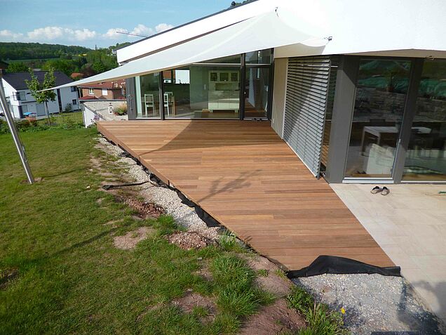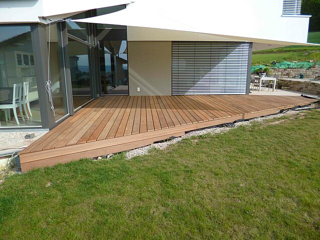 Mit einem Terrassendeck aus Massivholzdielen schaffen Sie sich einen angenehm begehbaren und wertigen Untergrund für den Aufenthalt im Freien und erweitern so die bewohnbare Fläche Ihres Heims.