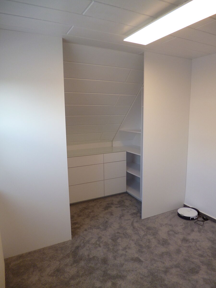Passgenaue Einbauten in Wandnischen und Dachschrägen erfordern ein genaues Aufmaß und höchste Präzision bei der Ausführung.