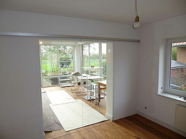 Wir fertigen für Sie individuell gestaltete Schiebetüren aus Glas, ohne Rahmen. Im Zusammenspiel von Glasoberfläche und Beschlag haben Sie die freie Auswahl. Auf diese Weise entstehen herrliche Einzelstücke, die den Blick auf sich ziehen.